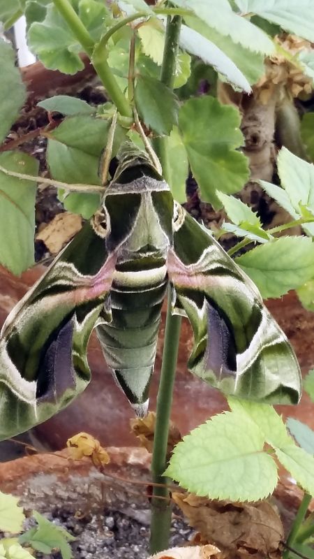 Ringraziamo Rinaldo Milanesi che ha condiviso la foto e la sorpresa di trovare una «misteriosa farfalla» tra le sue piante del suo balcone. Si tratta in realtà di una sfinge dell'oleandro (Daphnis nerii) che conferma come sia possibile incontrare insetti e animali in ambienti dove non ci si aspetterebbero novità, anche se piccole ma piacevoli